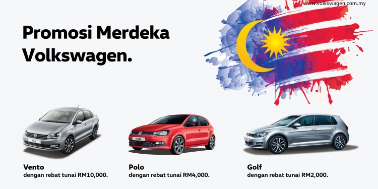 Dari sekarang hingga 31 Ogos, nikmati satu siri rebat tunai untuk model-model Volkswagen terpilih – RM10,000 untuk Vento, RM4,000 untuk hatchback Polo, dan RM2,000 untuk Golf.