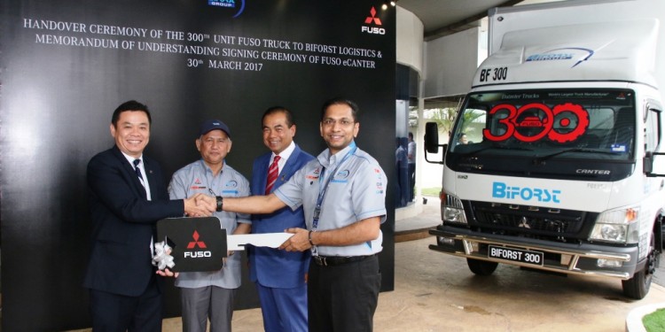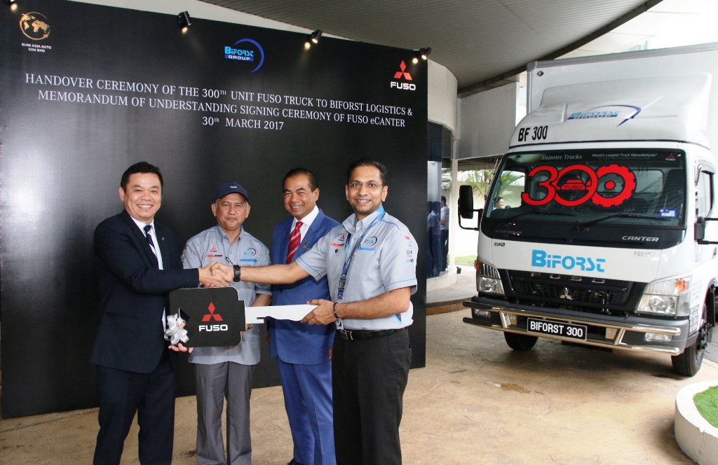 Mercedes-Benz Malaysia Commercial Vehicles (MBM CV), pengedar trak Fuso di Malaysia, meraikan penyerahan trak Fuso ke-300 kepada Biforst Logistics Sdn Bhd.