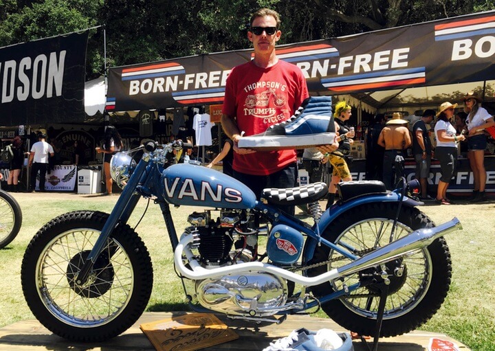 - Bryan Scott Thompson dari Thompson Cycles dengan motosikal Vans Triumph 1955.
