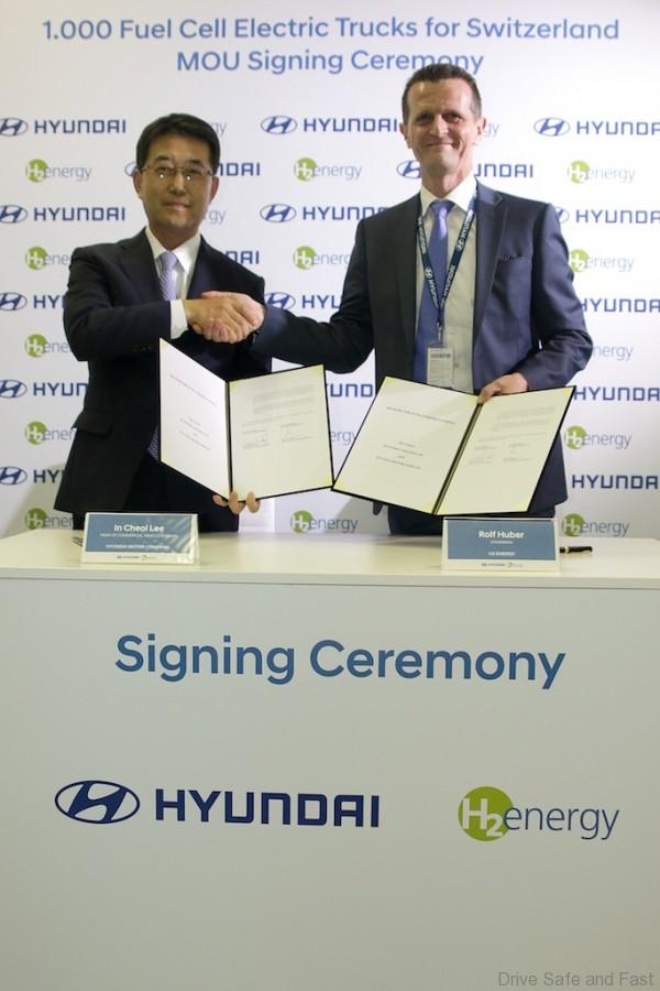 Hyundai Motor Company hari ini menegaskan di ‘IAA Commercial Vehicles 2018’ di Hanover bahawa ia telah memeterai Memorandum Persefahaman (MOU) dengan syarikat hidrogen Switzerland H2 Energy (H2E). Bermula pada tahun 2019 dan dalam tempoh lima tahun Hyundai Motor dan H2 Energy akan menyediakan 1,000 trak berat elektrik bahan api sel dan rantaian bekalan yang mencukupi untuk hidrogen boleh diperbaharui.