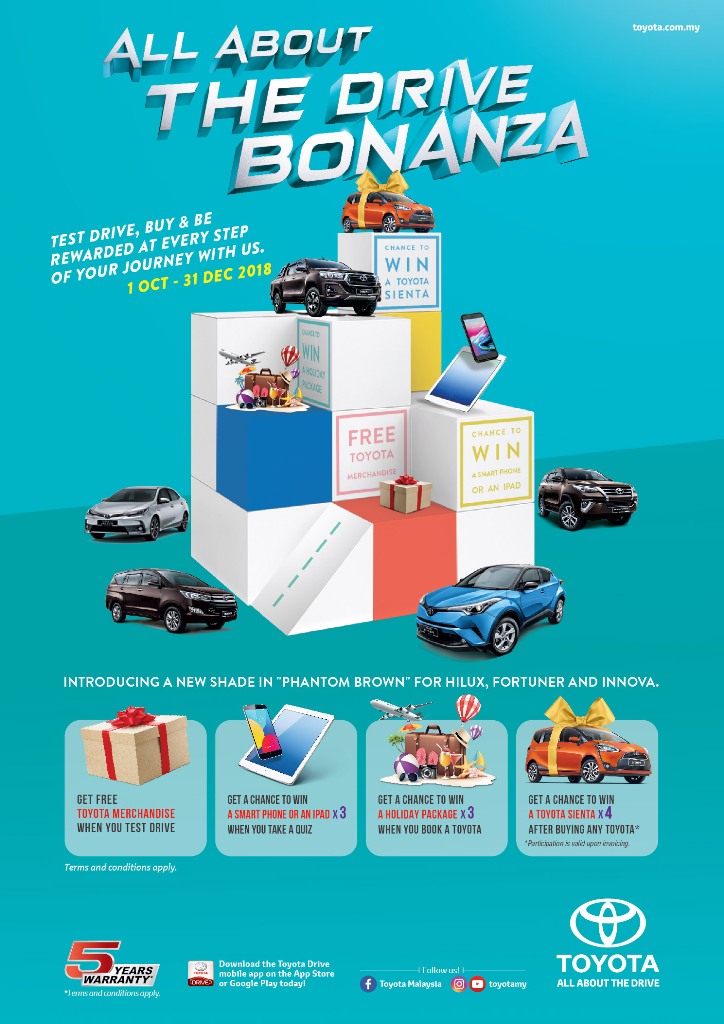 Bermula sekarang hingga 31 Disember 2018, pelanggan yang ingin membeli kenderaan baru dari Toyota akan berpeluang untuk memenangi hadiah-hadiah menarik, termasuk empat buah model MPV Toyota Sienta sebagai hadiah utama.