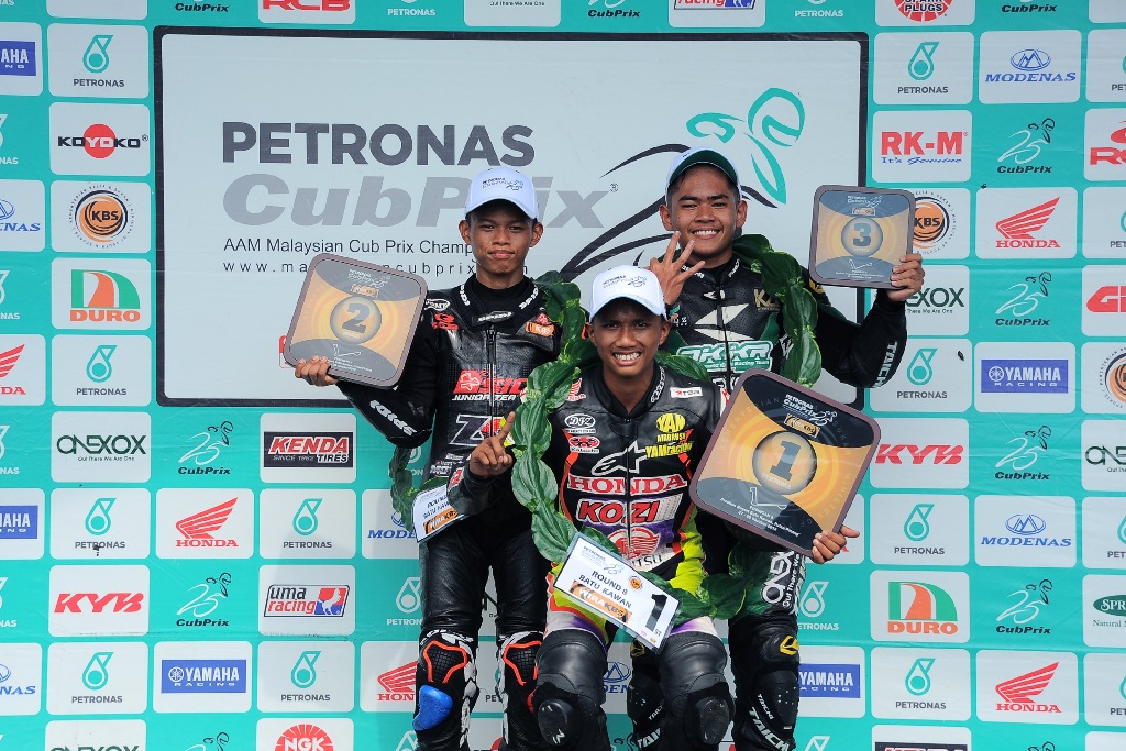 Tengku Amirul Haffirudin mengesahkan gelaran selaku juara keseluruhan CP115 dengan bergaya setelah menjuarai perlumbaan akhir pusingan kelapan Kejuaraan Cub Prix AAM Malaysia PETRONAS yang berlangsung di Batu Kawan, Pulau Pinang, hari ini.