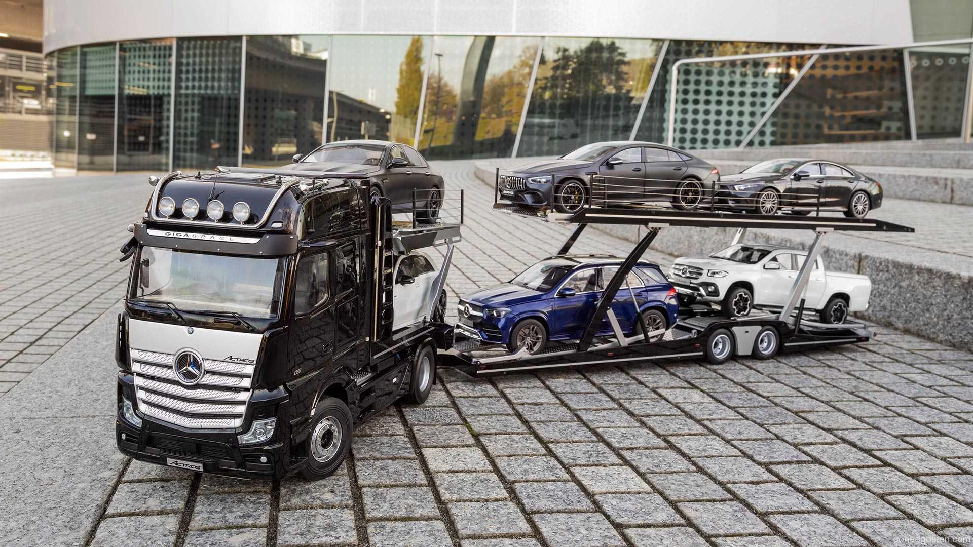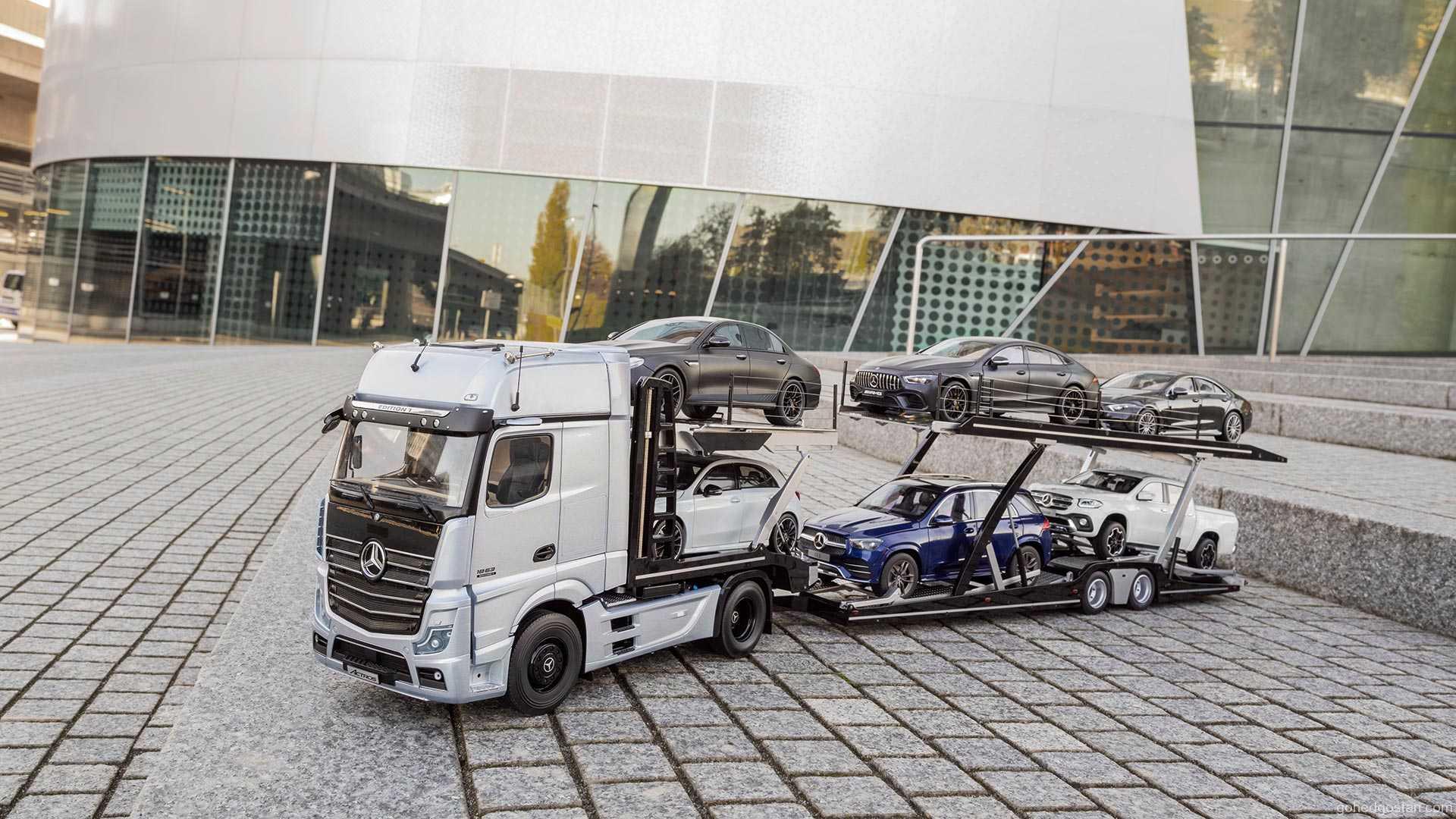 Tetapi jika anda sudah bosan dengan almari atau rak dari Ikea, Mercedes-Benz buat pertama kalinya menawarkan model diecast treler pengangkut kenderaan Actros GigaSpace berskala 1:18 yang boleh digunakan untuk mempamerkan sehingga enam buah model skala pada satu-satu masa.