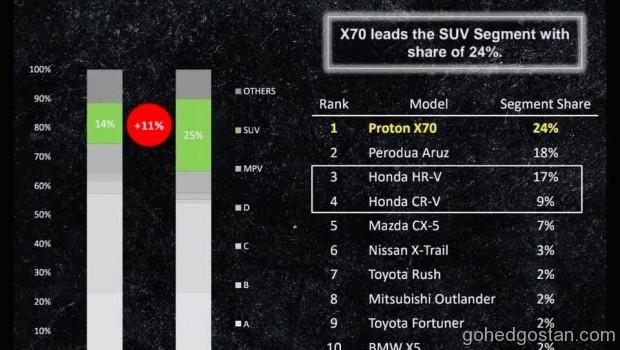 Tahniah kepada Geely dan pasukan Proton dengan PROTON X70 SUV mereka kerana berjaya menawan 24% pasaran SUV Malaysia.