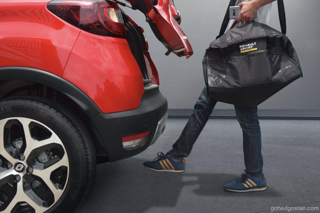 Untuk meningkatkan lagi kemudahan, pintu belakang kuasa bebas tangan yang pertama dalam kelasnya juga telah ditambah pada Captur+. Dengan pintu belakang kuasa bebas tangan, but boleh dibuka dengan hanya menggerakkan kaki di bahagian bawah bampar belakang ketika tangan anda penuh dengan barang-barang. Ketinggian bukaan pintu boleh diprogram mengikut keperluan individu.