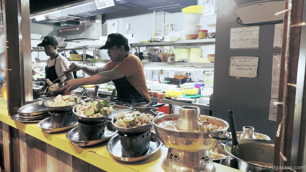 Food court di kelilingi warung- warung masakan Thai. Tukang masak semua warga Thai dari Thailand. Menu besar dengan pelbagai jenis masakan Thai. Cepat dan tepat.