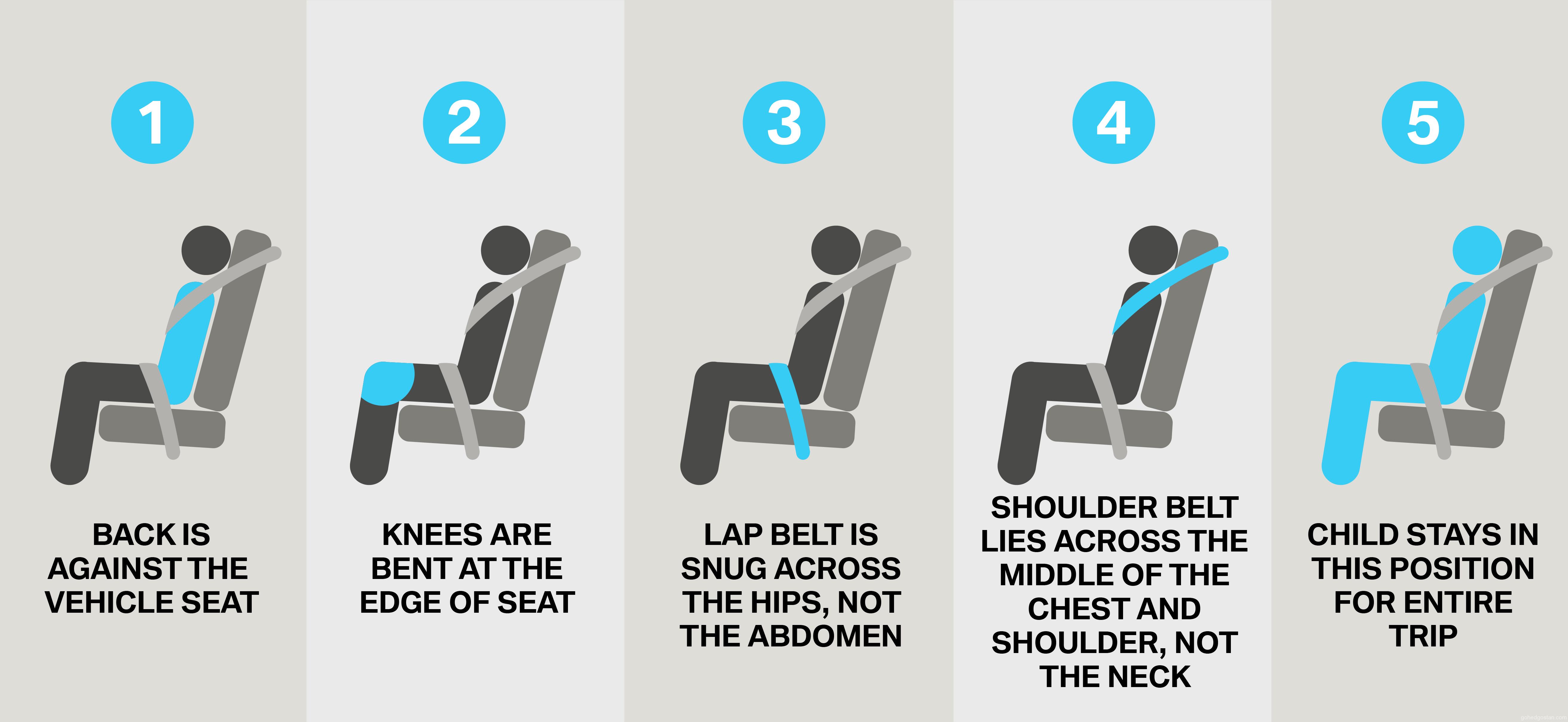 Ibu bapa boleh beralih kepada penggunaan tali pinggang keledar sekiranya anak mereka mematuhi lima langkah ini: