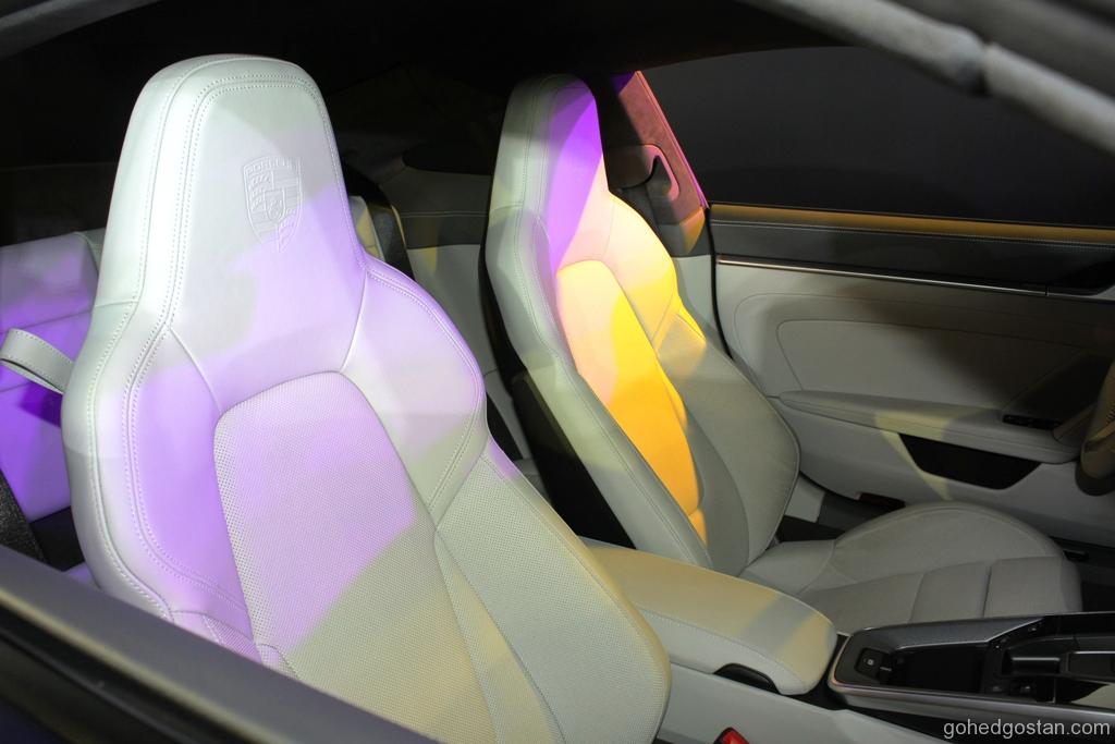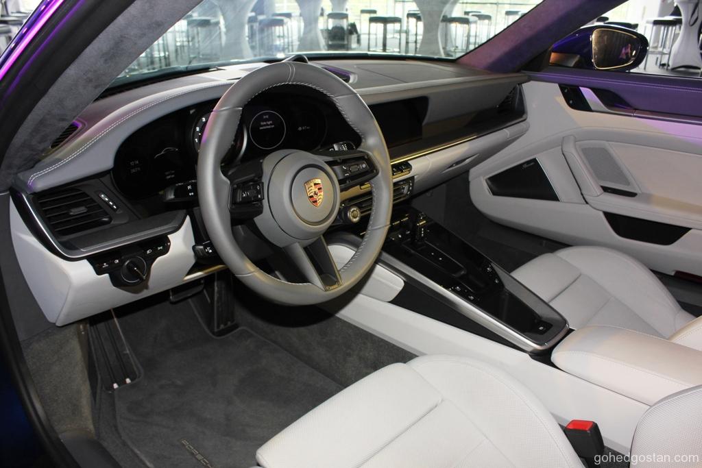 Bahagian dalaman pula menggabungkan elemen tradisional dan teknologi canggih. Pada panel instrumen, terdapat meter analog di antara dua paparan berukuran 7 inci di mana semua informasi mengenai kenderaan dipaparkan. Selain itu, skrin sentuh baharu berukuran 10.9 inci pula memberikan akses kepada sistem Porsche Communication Management (PCM).
