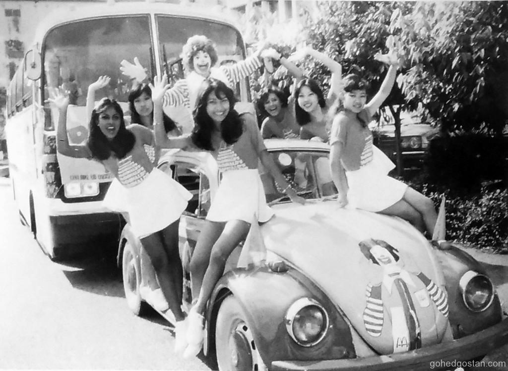 Sebelum sampai ke mana-mana restoran baharu Ronald McDonald terlebih dahulu akan berarak sekeliling kota dengan lagunya melalui loud-hailer berkumandang mempelawa sesiapa saja sepanjang perjalanan untuk bersama-sama ke restoran baharu itu. Antara pemandu kereta Beetle Ronald McDonald itu adalah – saya!