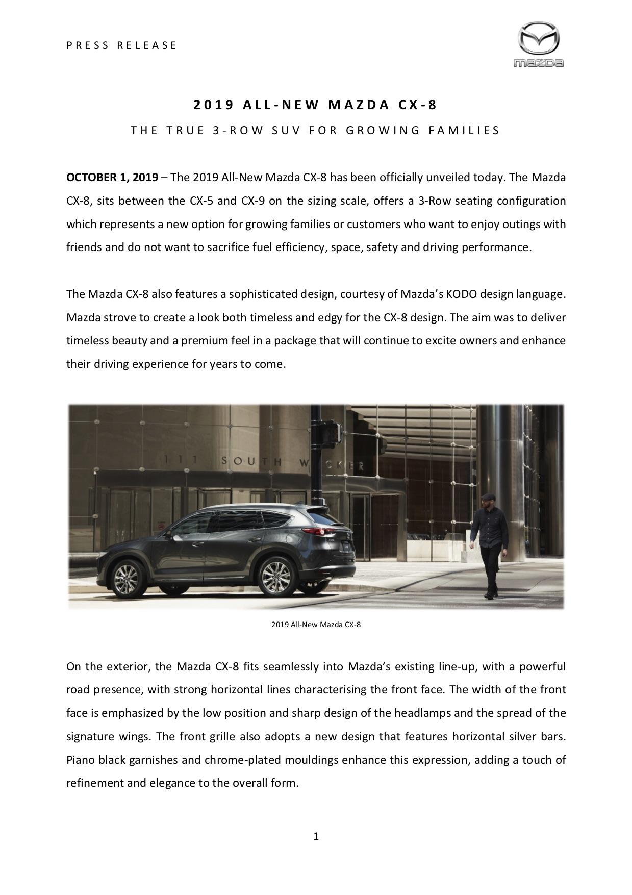Mazda CX8 (anggaran harga jualan pemasangan tempatan adalah seperti berikut)