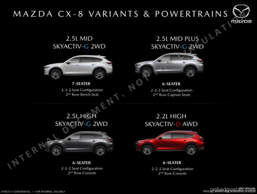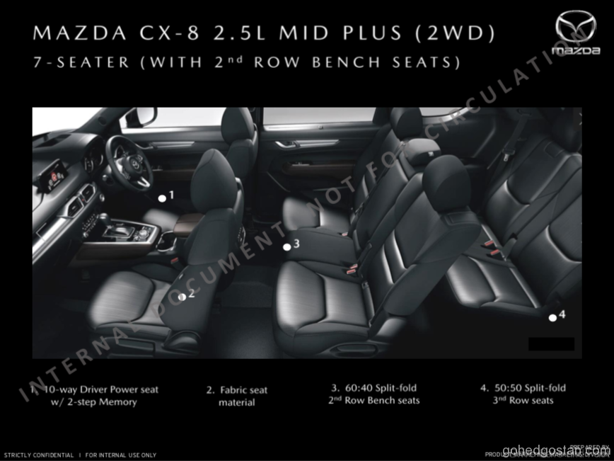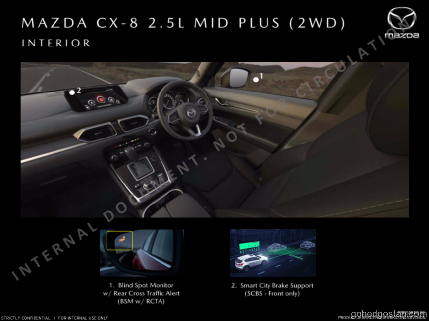 - CX8 – 2.5L Skyactiv 2WD (2 + 2 + 2, Tiada Kerusi Kulit, Laluan Berjalan) Anggaran harga jualan RM182,000