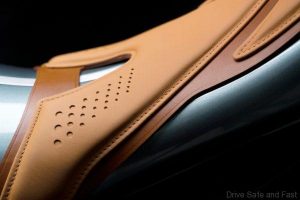 Roda, fork, dan brek adalah hitam-mat, dengan aksen serat karbon. Lapik duduk dalam kulit oxford tan yang dijahit tangan.