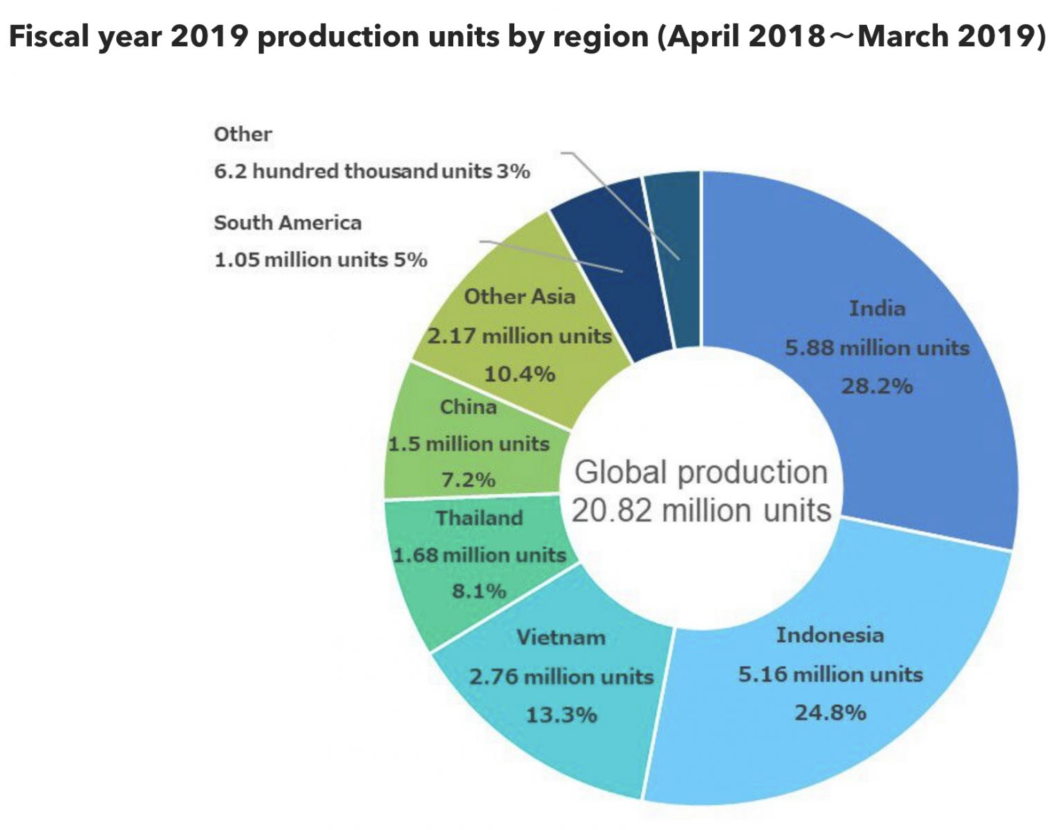 Berikut adalah carta pecahan di mana motosikal itu dihasilkan tahun lepas: