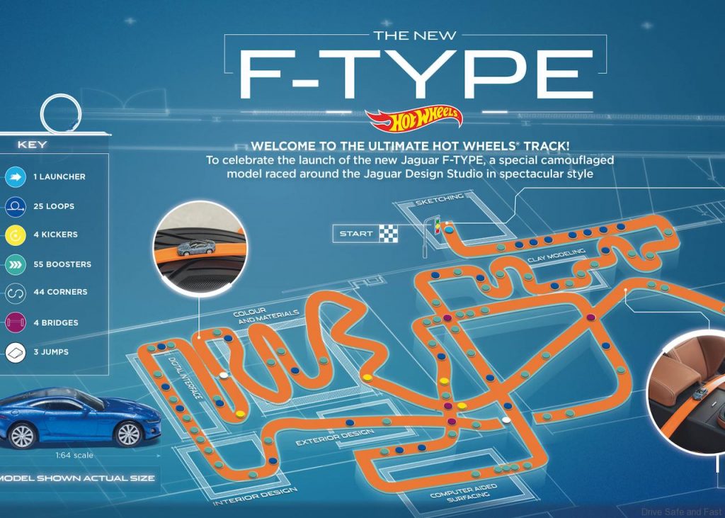 Bersempena dengan pelancaran perdana global F-Type baharu, Hot Wheels telah bekerjasama dengan Jaguar untuk mencipta trek giler ini dalam studio reka bentuk syarikat itu.