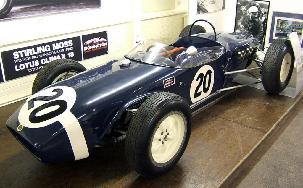 Sir Stirling Moss memenangi Grand Prix Monaco pada tahun 1968 dengan memandu jentera Lotus Type 18 berwarna biru dan putih seperti ini.