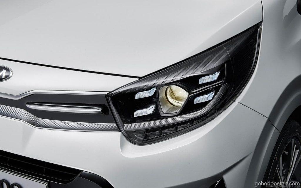 Kia Picanto nampaknya mempunyai sekurang-kurangnya dua pilihan dalam kebanyakan aspek. Untuk pencahayaan, bahagian bawah melihat reflektor halogen dengan LED membentuk bahagian atas. Lampu depan LED juga kelihatan membawa peningkatan trim lain pada fasia depan, termasuk reka bentuk yang lebih rumit, lampu siang, penggunaan krom dan plastik hitam berkilat.