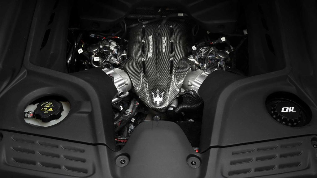Dibangunkan sendiri oleh Maserati, enjin 3.0-liter V6 90-darjah itu dibantu oleh dua pengecas turbo bagi membolehkannya menghasilkan 630 PS pada 7,500 rpm dan 730 Nm dari 3,000 rpm, atau 210 PS bagi setiap liter.