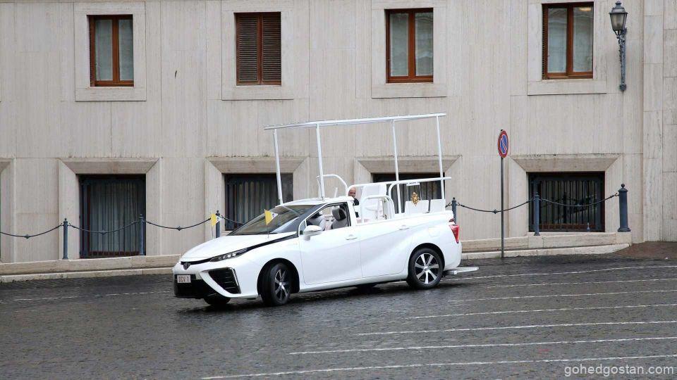 The Catholic Bishops ’Conference of Japan (CBCJ) telah menghadiahkan Toyota Mirai generasi pertama buatan khas untuk digunakan sebagai Popemobile seterusnya. Kereta itu dihantar ke kediaman Pope Francis di Vatican.