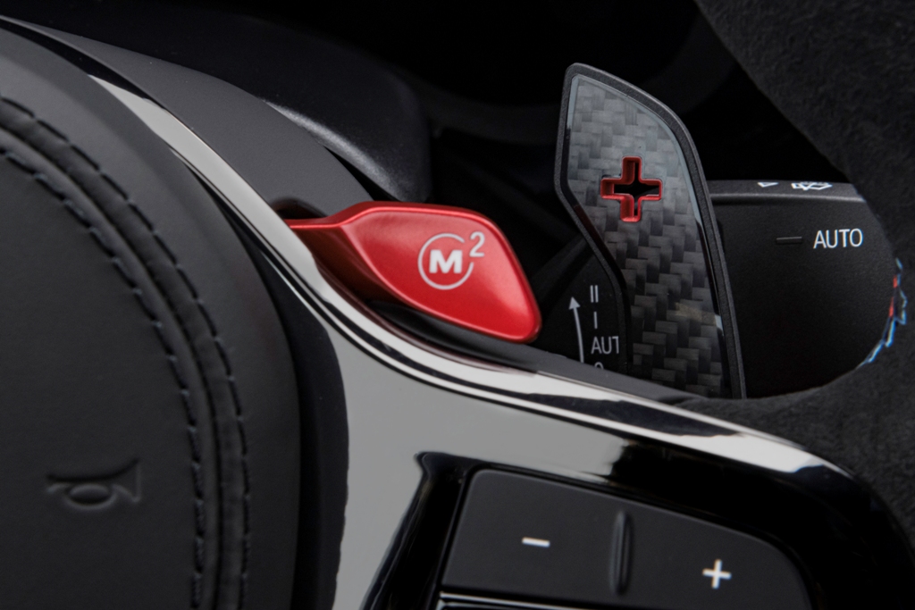 Di dalam, M5 CS menampilkan tempat duduk M Carbon pada bahagian hadapan dan belakang, bermakna kapasiti penumpang dikurangkan daripada lima kepada empat. Terdapat juga upholsteri kulit Merino dengan jahitan merah Mugello, logo litar Nurburgring pada perehat kepala, balutan Alcantara pada stereng, dan paddle shifter gentian karbon.