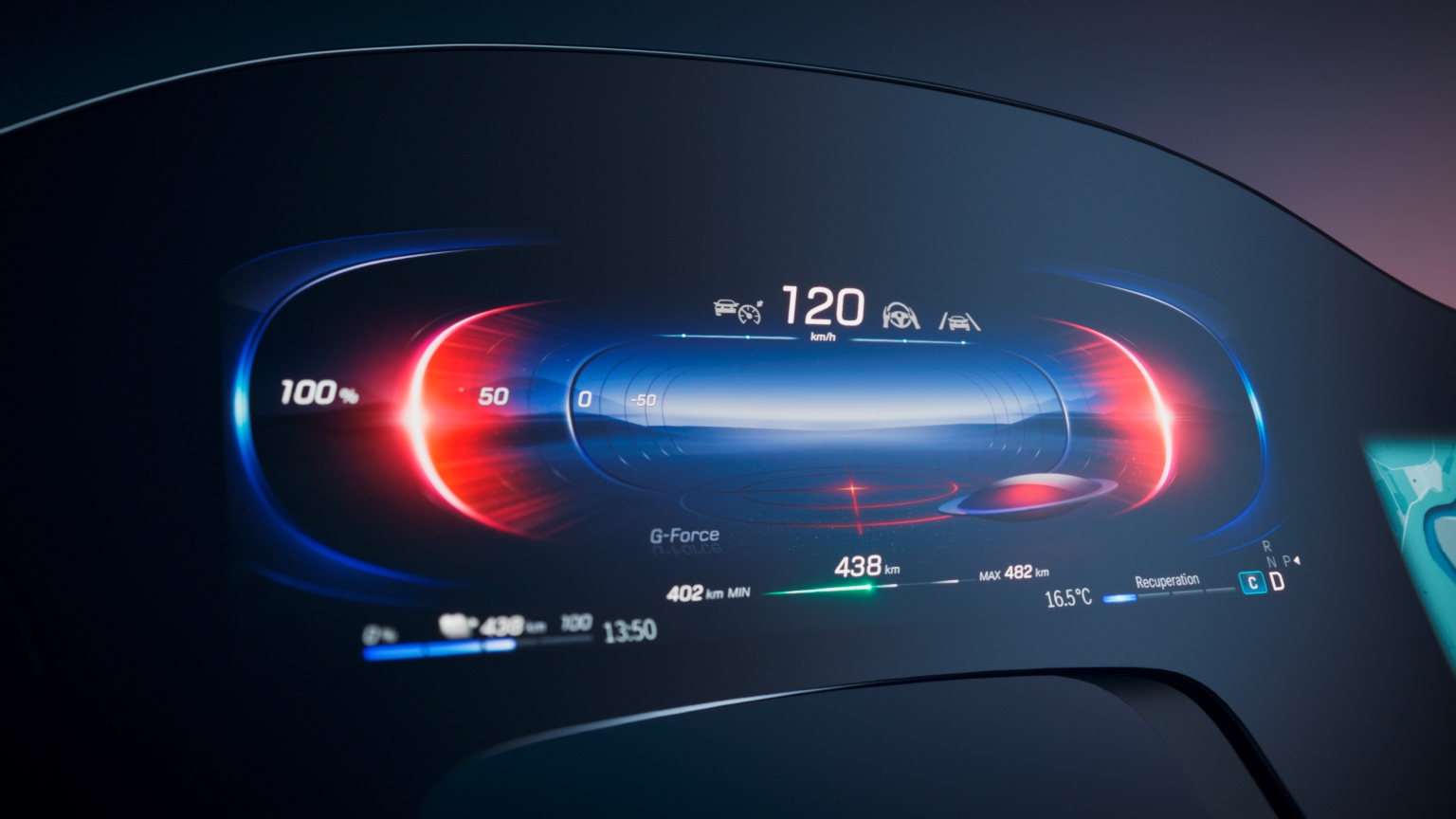 Hyperscreen secara asasnya adalah papan pemuka digital yang dilindungi oleh lapisan kaca Corning Gorilla Glass melengkung dan dikelilingi oleh bingkai plastik. Pencahayaan ambien yang diintegrasikan pada bahagian belakang Hyperscreen membuatkan paparan berukuran 141 cm (56 inci) ini kelihatan seolah-olah timbul di atas panel instrumen.