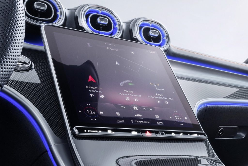 Seperti kebanyakan model Mercedes-Benz sedia ada, C-Class dilengkapi dengan sistem infotainmen Mercedes-Benz User Experience (MBUX) dengan ciri arahan suara “Hey Mercedes”. Ia juga mempunyai fungsi Smart Home yang membolehkan pemandu mengawal suhu, lampu dan kelengkapan elektrik di dalam rumah dari dalam kereta.