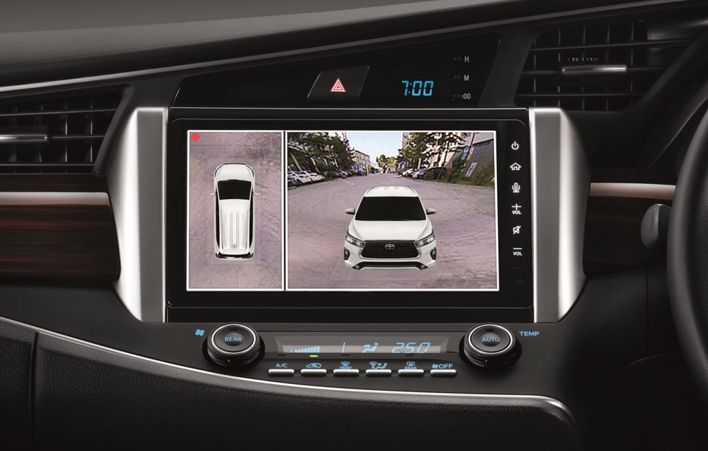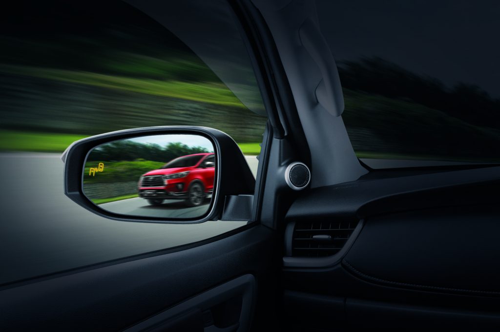 Dari segi keselamatan, Peninjau Titik Buta (BSM) dengan Amaran Lintasan Trafik di Belakang (RCTA) kini standard pada Innova 2.0X dan 2.0G dan ditawarkan sebagai pilihan bagi varian 2.0E. Dua varian teratas itu juga mendapat Peninjau Pandangan Panoramik (PVM) dan Sistem Telematik Kenderaan Toyota (VTS).