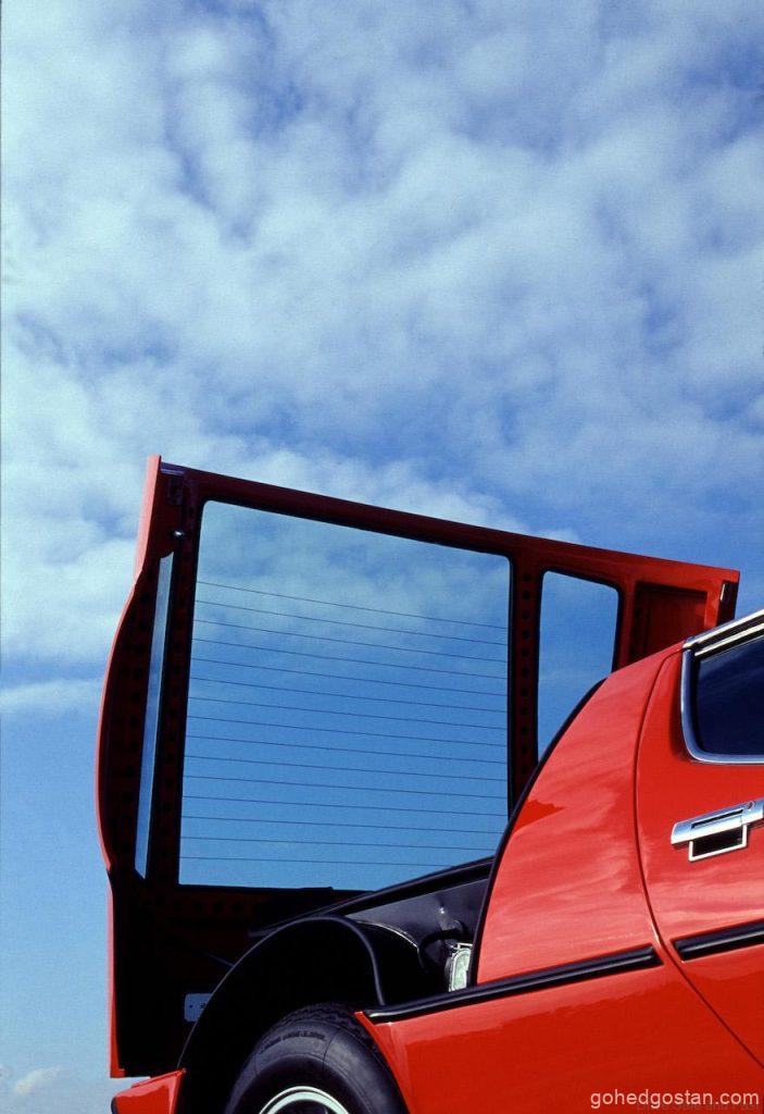 The approach was futuristic, with a low, slender, almost tapered front styled to cut through the air, while the front grille included two rectangular air vents with a Trident in the centre. The perfectly sleek sides were centrally divided by a thin black rubber trim, while the rear ended in a Kamm or truncated tail.