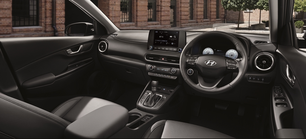Bagi sistem infohibur, kedua-dua varian didatangkan dengan skrin AVN berukuran lapan inci dengan Apple CarPlay dan Androit Auto secara standard. Kona Active mendapat ciri tambahan eksklusif iaitu kluster instrumen digital berukuran 10.25 inci.