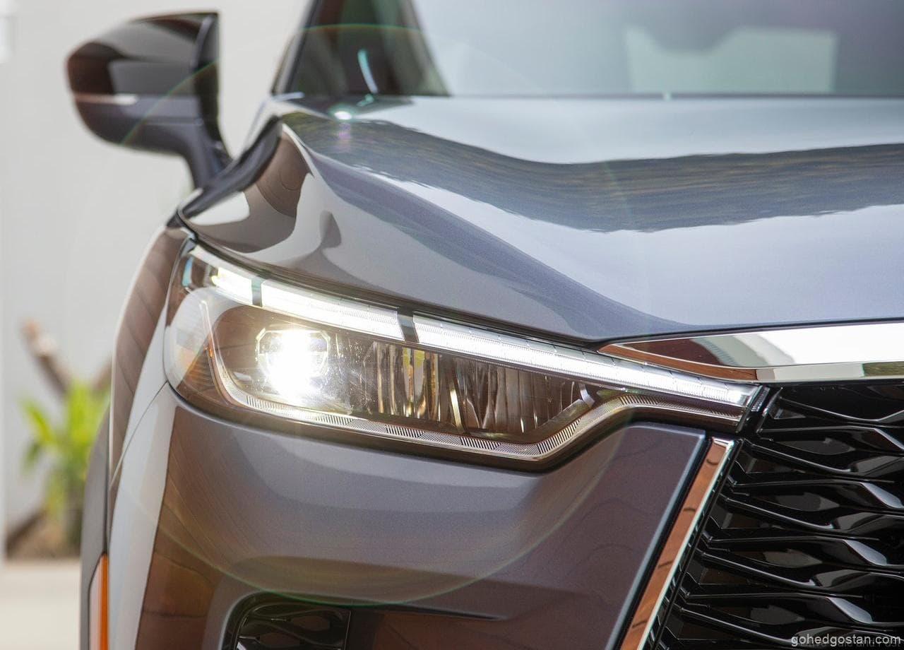 Eye-catching chrome frames the signature grille and reaches up toward the corners into Infiniti’s signature piano key LED headlights, which are standard on all QX60 grade levels.