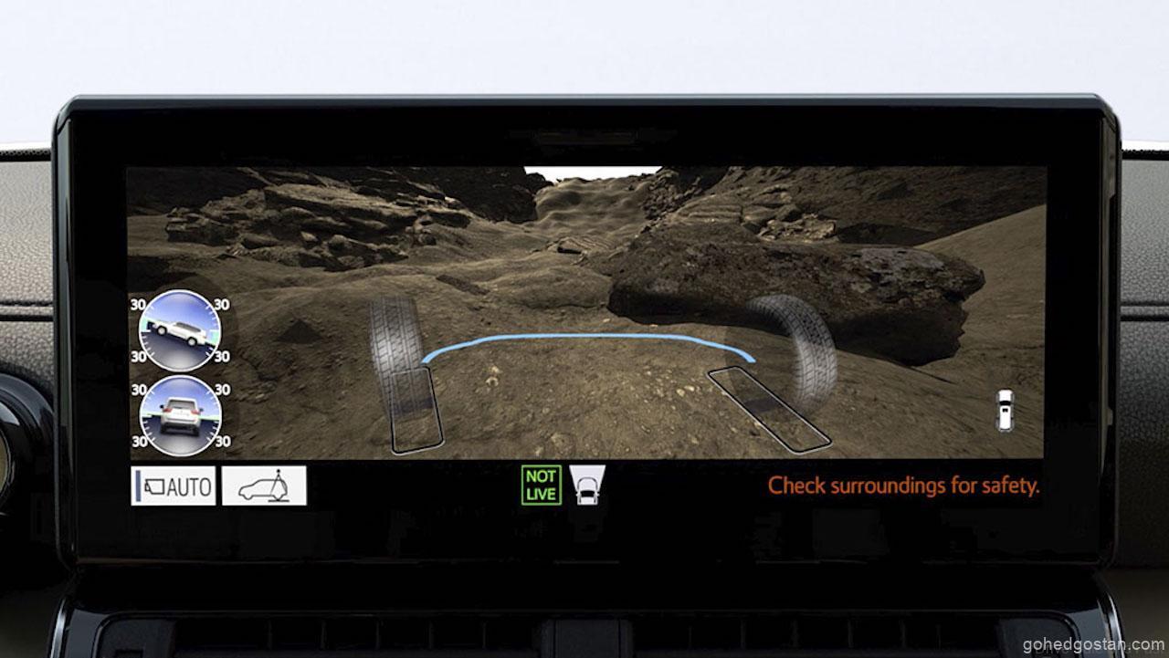 Focus areas included tuning suspension performance to achieve optimum wheel articulation, keeping the tyres in contact with the ground on rough terrain, and improving road-holding with a world-first Electronic Kinetic Dynamic Suspension System (E-KDSS). The new Toyota Land Cruiser 300 is also the first Toyota to adopt a Multi-Terrain Monitor, which gives the driver a real-time view of the road surface beneath and immediately surrounding the vehicle and the position of the wheels. The Multi-Terrain Select system automatically judges the quality of the driving surface and adopts the most appropriate driving mode.