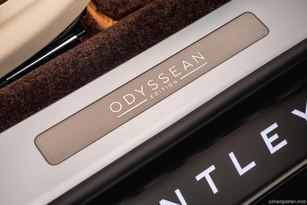 Di dalamnya, kabin Edisi Odyssean adalah tempat kebanyakan bahan baharu dan lestari digunakan. Tweed pada panel tertentu telah dibuat dari 100% bulu bersumber tempatan. Permaidani Lambswool adalah pilihan dan meningkatkan kandungan bulu dalaman Flying Spur Odyssean Edition.