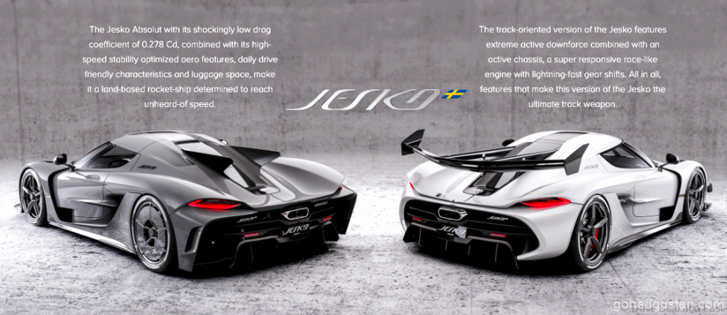 Enjin Jesko menghasilkan 1280 kuasa kuda dan tork 1000Nm dari serendah 2700rpm. Dengan berat pengekang 1420kg, ini membolehkan angka prestasi hebat dan hanya kereta hiper elektrik penuh seperti Lotus Evija dengan 2000PS yang dapat menandingi.
