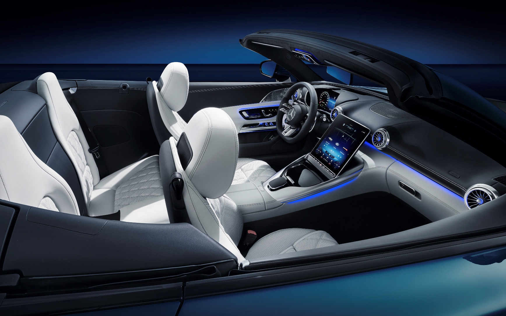 Selain itu, SL juga akan didatangkan dengan sistem audio Burmester dengan pembesar suara yang diperbuat daripada logam yang diintegrasikan ke dalam panel pintu, serta sistem pencahayaan ambien dengan 64 pilihan warna. Terdapat juga paparan ‘head up’ tiga dimensi namun ia ditawarkan sebagai ciri opsyen.