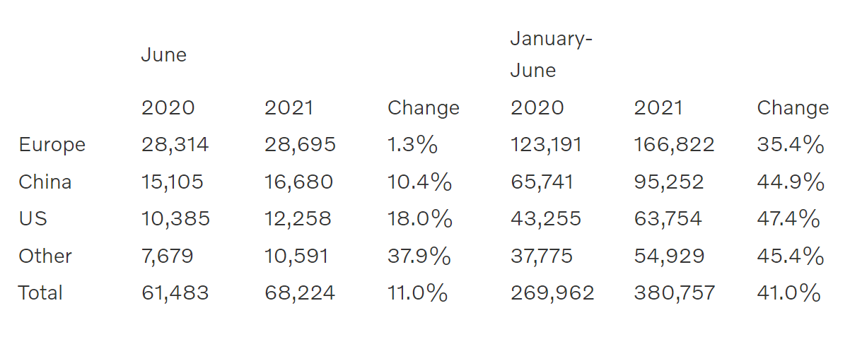 Berikut adalah perincian prestasi jualan separuh pertama 2021 Volvo mengikut kawasan: