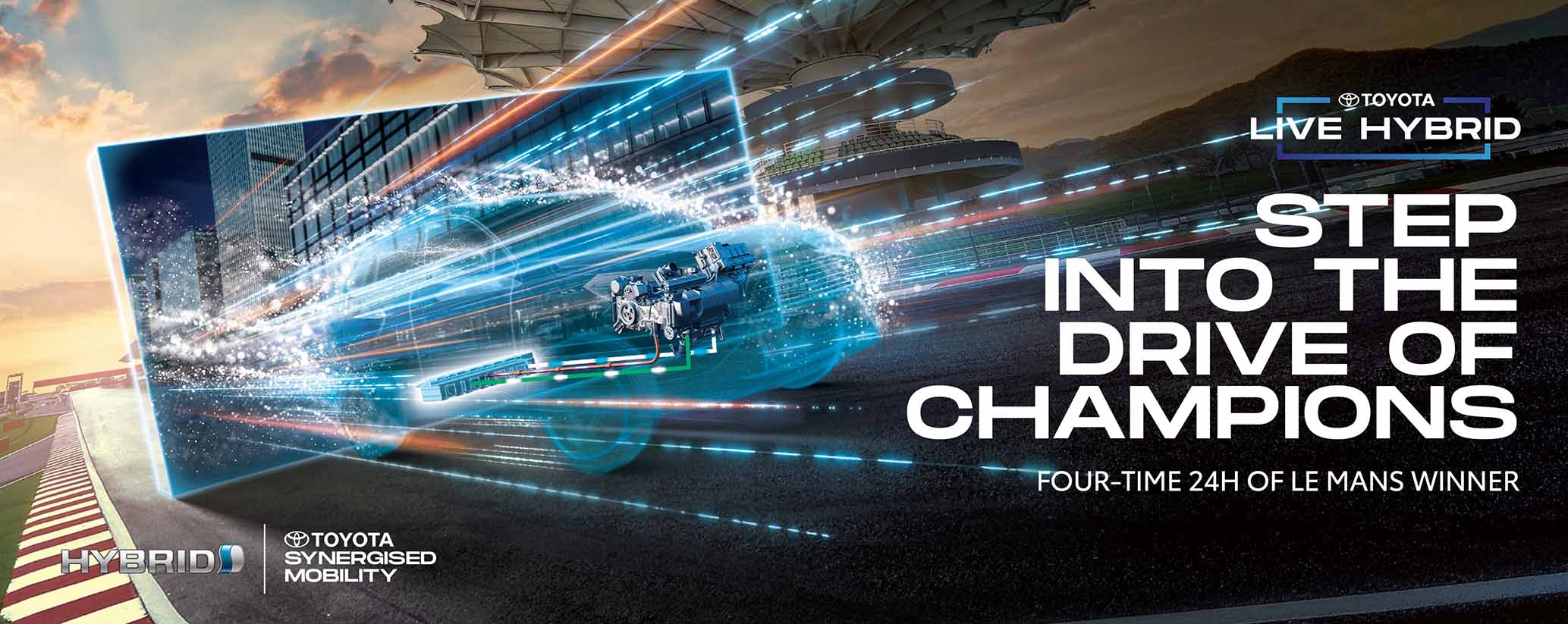 • Teknologi juara: Kemajuan teknologi akan terus diuji dengan cermat dan akan dibuktikan melalui penglibatan Toyota dalam sukan permotoran antarabangsa. Ini termasuklah acara tersohor seperti perlumbaan endurance Le Mans 24 Hours dan Kejuaraan Rali Dunia.