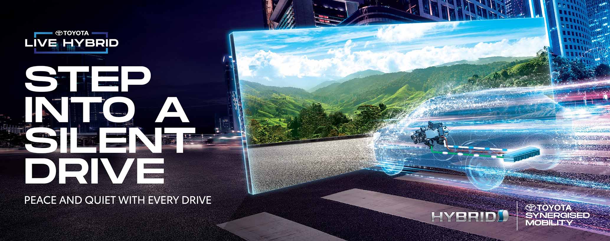 • Senyap: HEV Toyota direka untuk menjadi sangat menyeronokkan untuk dipandu, menawarkan tahap lebih tinggi bagi prestasi, kepekaan, pecutan dan kendalian, dan dalam masa sama memberikan tahap lebih baik bagi aspek kebisingan, gegaran dan kekerasan (NVH). Ia juga mempunyai mod EV.