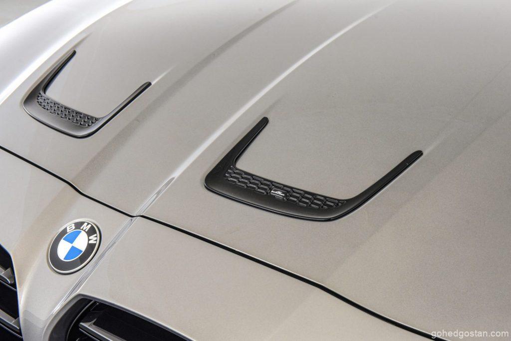 Splitter depan meningkatkan daya tekan sebanyak 40 kg pada 200 km / j. Ciri dinamik Aero terus berada di tepi M3 dengan set deflektor empat keping untuk fender depan, yang dilengkapi dengan elemen reka bentuk hood.