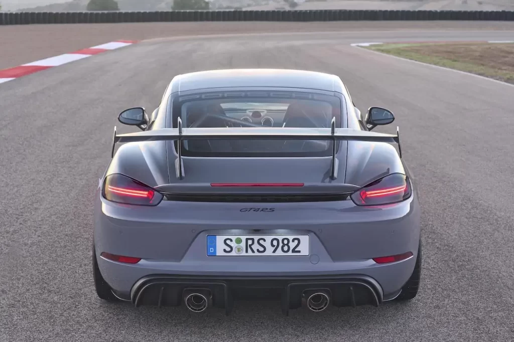 Porsche 718 Cayman GT4 RS bergerak dari 0-100km/j dalam hanya 3.4 saat dan mempunyai kelajuan tertinggi 315km/j apabila dilengkapi dengan PDK 7-kelajuan. Gear boleh ditukar secara manual menggunakan paddle shifters atau tuil pemilih gear tengah. Porsche telah meletakkan saluran masuk udara betul-betul di belakang tingkap pemandu dan penumpang, yang menghasilkan bunyi intake unik betul-betul di sebelah telinga penumpang. Intake juga terdapat di hadapan roda belakang untuk menyejukkan enjin. Lebih-lebih lagi, mod Prestasi, yang dikhaskan untuk digunakan di trek perlumbaan menjana 25% lebih downforce berbanding 718 Cayman RS.