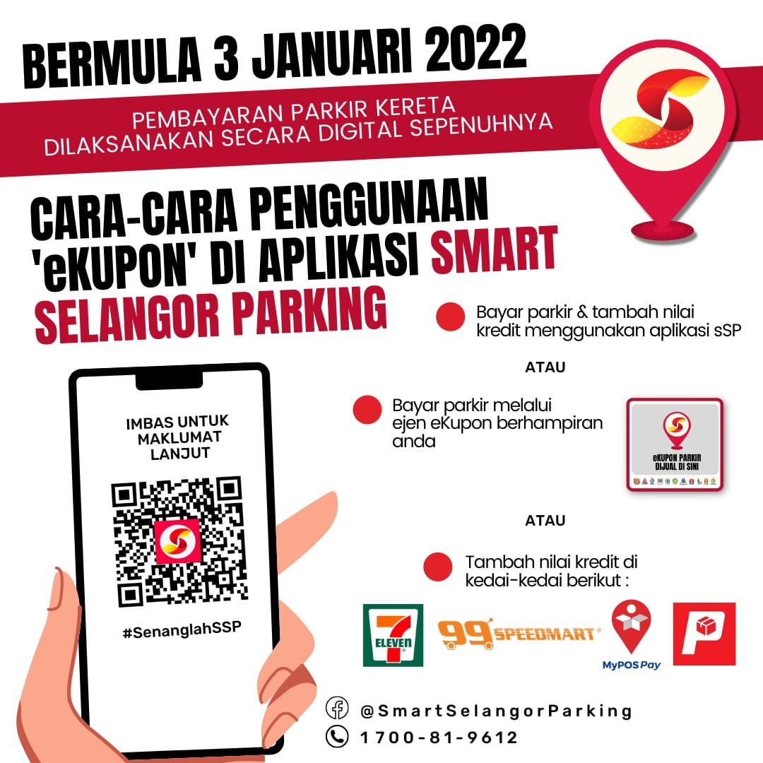 Penggunaan kupon parkir kertas dan pembayaran manual menerusi mesin syiling untuk parkir jalanan di Selangor akan dihentikan pada 31 Disember 2021. Kaedah-kaedah ini akan digantikan dengan sistem pembayaran digital sepenuhnya yang boleh dibuat menerusi aplikasi Smart Selangor Parking (SSP) bermula 3 Januari 2022.