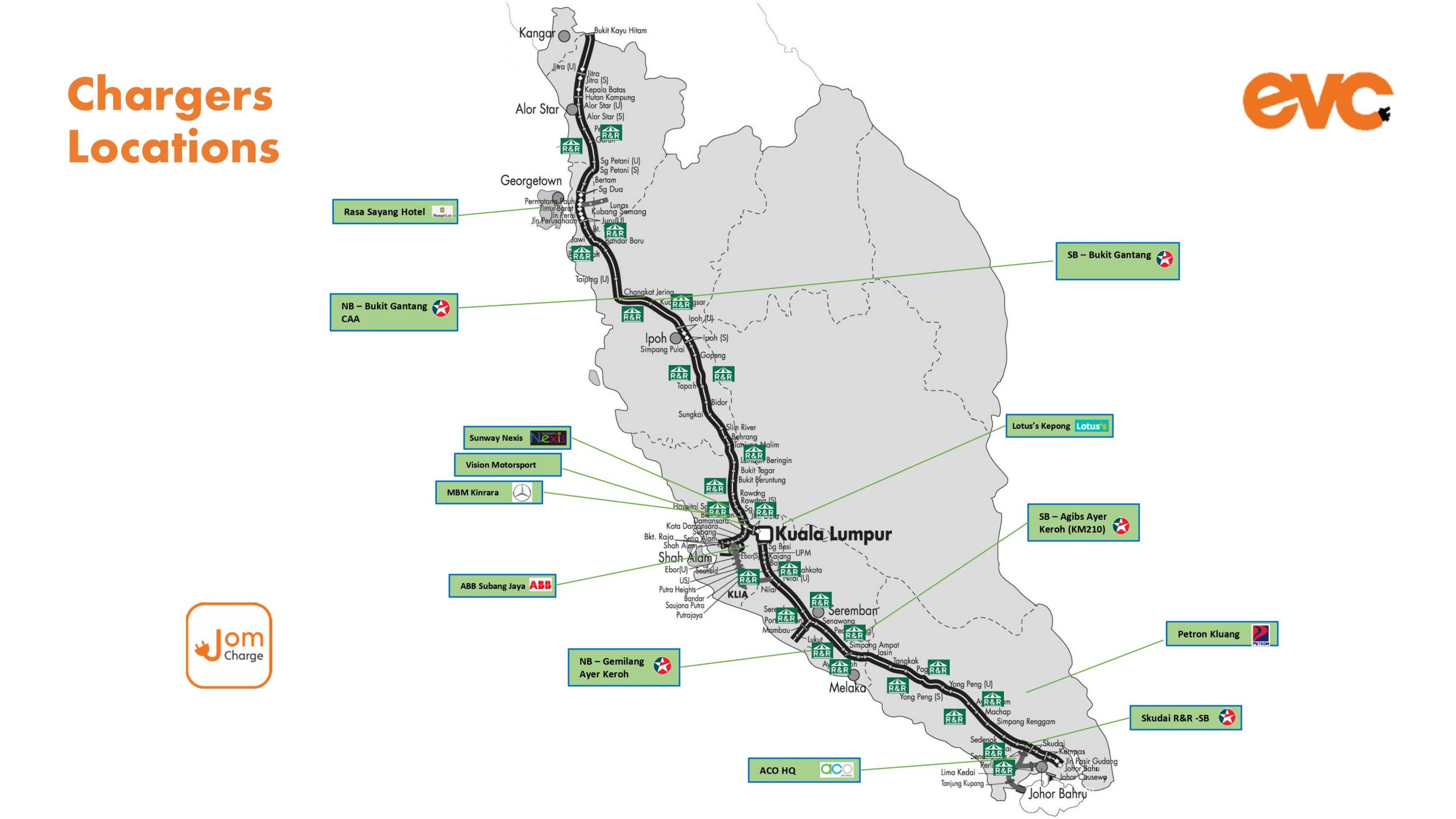 Buat masa ini, terdapat 20 poin pengecasan Go yang sedia untuk digunakan di Malaysia, dengan kebanyakannya terletak di sepanjang Lebuhraya Utara Selatan. Menurut The Straits Times, pengasas EV Connection, Lee Yuen How berkata syarikatnya mensasarkan untuk menambah 50 lagi pengecas menjelang akhir tahun ini bagi membolehkan pengguna EV pergi ke arah pantai timur.