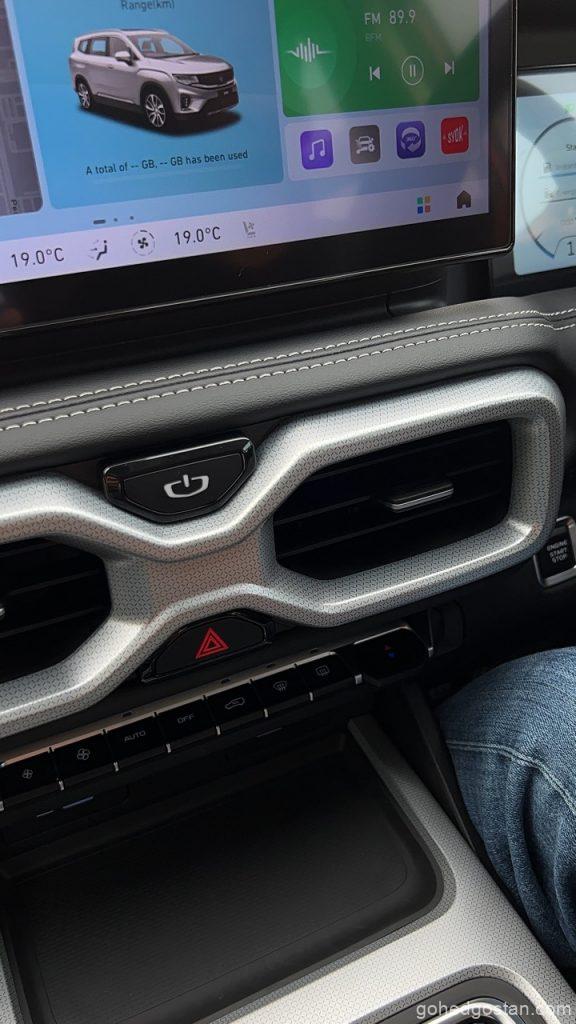 Kesan Pertama: Reka Bentuk dan Keanggunan – SUV ini kelihatan besar dan sesuai untuk keluarga. Juga sesuai sebagai kenderaan rasmi kerajaan Malaysia. Bayangkan ianya hitam dengan tint cermin hitam. Pasti kelihatan ala kenderaan rasmi FBI/CIA. Kabin Proton X90 turut menawarkan suasana premium dengan bahan dan kualiti siapan yang baik. Tempat duduk di dalam kabin selesa tanpa terlalu lembut dan didatangkan dengan sistem penyejuk udara untuk ketiga-tiga baris.