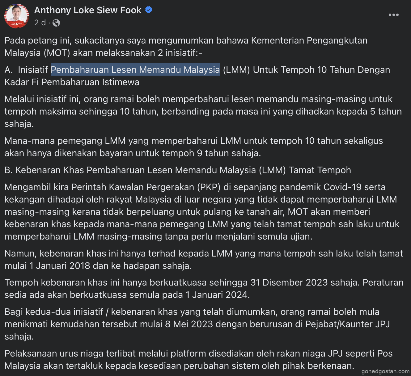 Terima kasih kepada YB Anthony Loke dan Jabatan Pengangkutan Jalan Raya atas inisiatif hebat ini yang pasti akan membantu memudahkan kehidupan pemandu Malaysia.