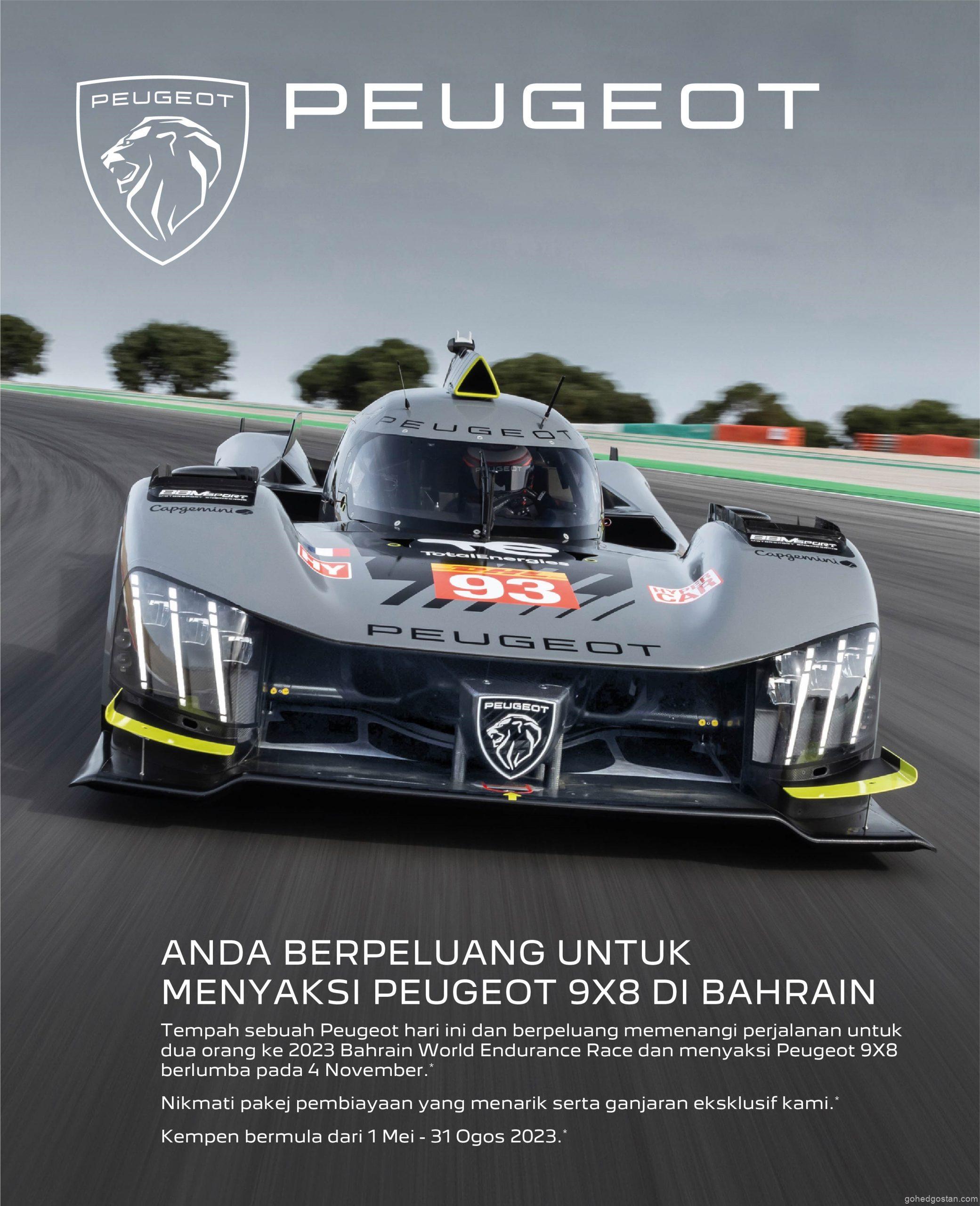Mulai 1 Mei hingga 31 Ogos 2023, Bermaz Auto Alliance Sdn Bhd telah mengumumkan kempen “Catch the Alluring PEUGEOT 9X8 at Bahrain”. Pemilik PEUGEOT bertuah akan berpeluang memenangi perjalanan lengkap semua perbelanjaan untuk dua orang ke perlumbaan Kejuaraan Endurance Dunia Bahrain 2023 pada 4 November 2023.