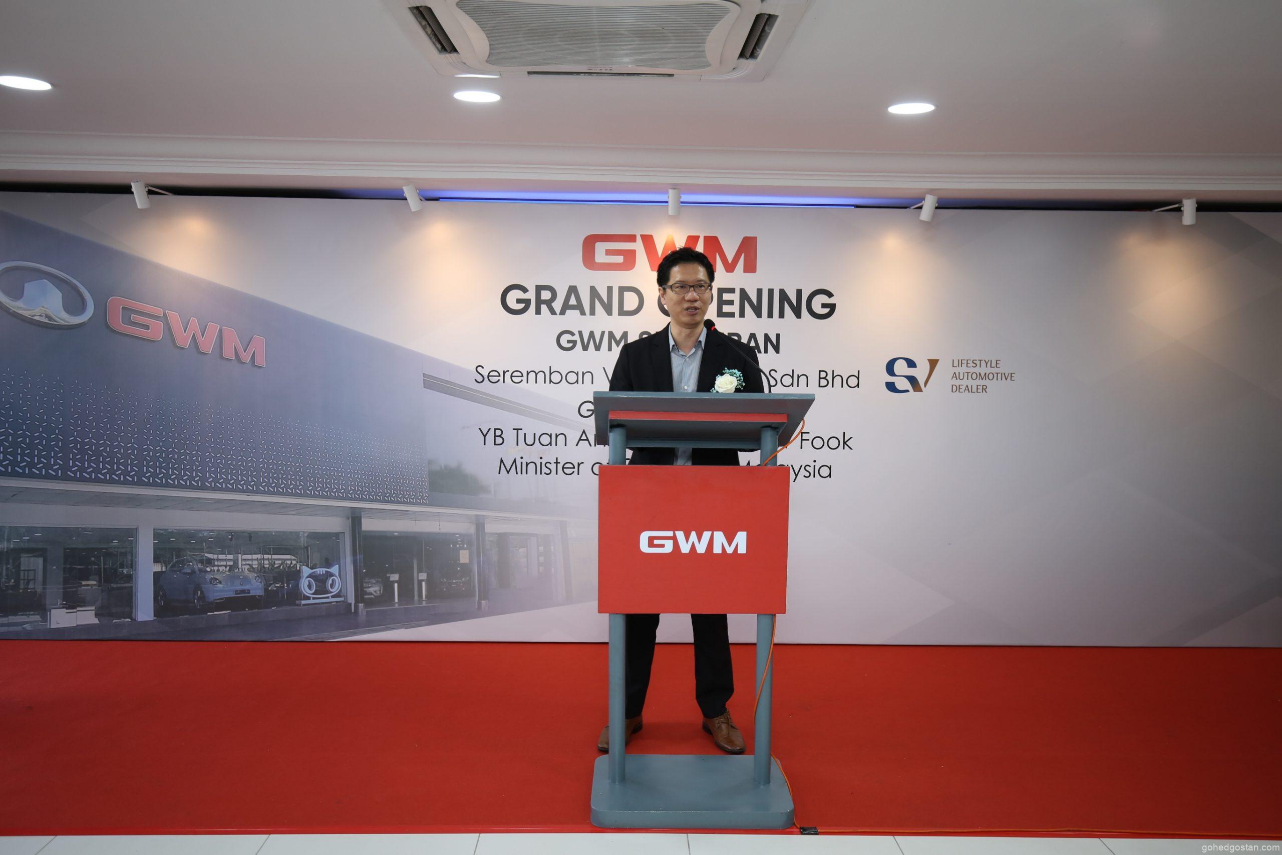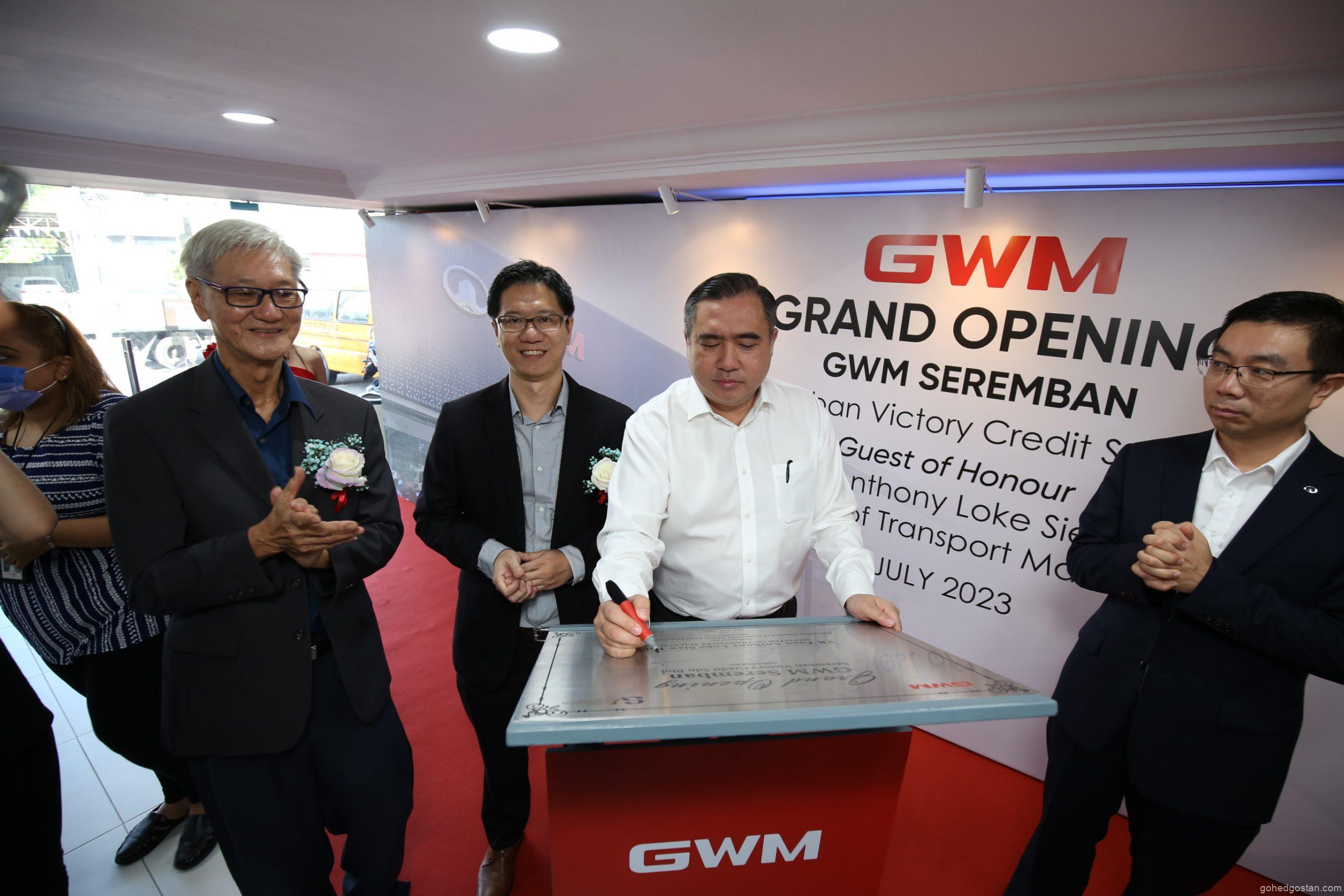 Menteri Pengangkutan, YB Anthony Loke Siew Fook, turut hadir merasmikan majlis pembukaan Seremban Victory Credit Sdn Bhd. Ini adalah bukti bahawa pembukaan pusat ini dianggap sebagai satu pencapaian ulung dalam usaha GWM untuk meluaskan rangkaian pengedar mereka dan mempercepatkan penggunaan kenderaan elektrik (EV) di Malaysia.