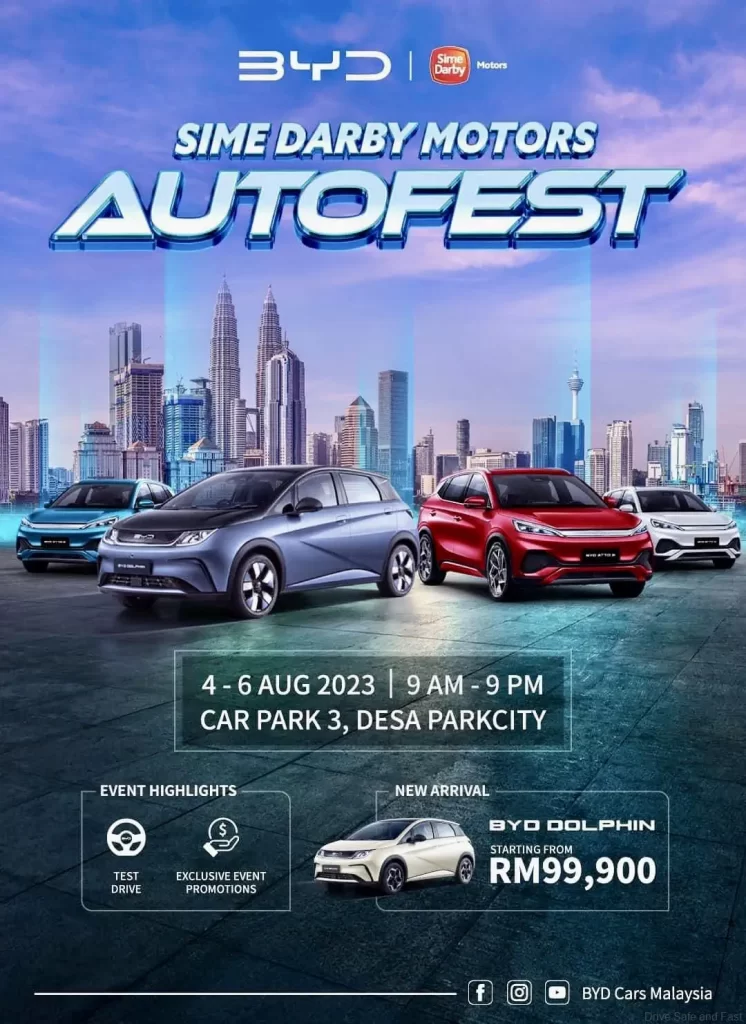 Dengan BYD, bersiaplah untuk hujung minggu yang elektrifikasi! Jejaklah ke masa depan mobiliti elektrik dengan SUV EV laris, BYD ATTO 3, dan BYD DOLPHIN yang baru dilancarkan, kedua-duanya dilengkapi dengan Bateri Blade yang inovatif dan selamat. Harga bermula dari RM99,900 sahaja. Ini peluang keemasan untuk mencuba dan mengetahui sendiri kehebatan kereta elektrik ini.