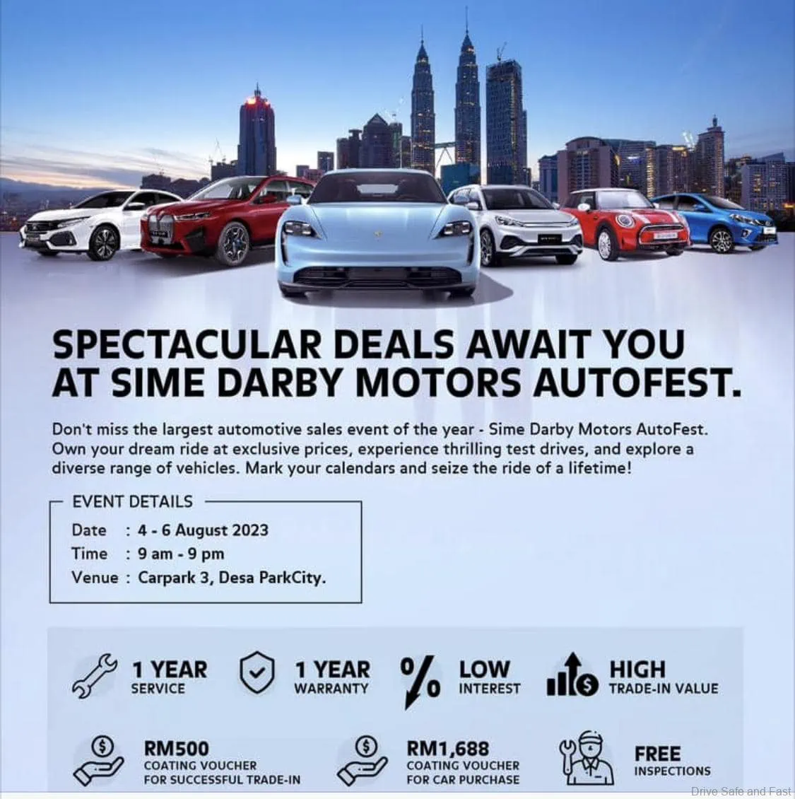 Jangan lupa tentang Sime Darby Auto Selection yang menawarkan Jaminan dan Perkhidmatan 1 Tahun Percuma, Kadar Faedah Rendah, Nilai Tukaran Tinggi, dan Baucer Pelapisan RM500 secara percuma untuk setiap tukaran berjaya.