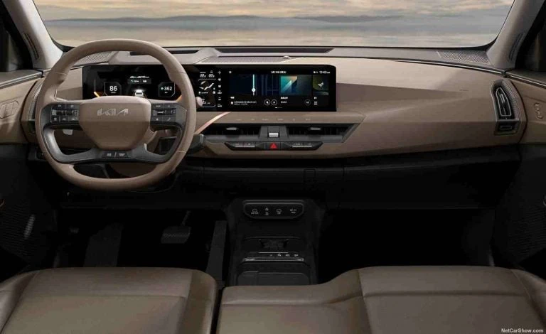 Perekaan luaran EV5 menampilkan reka bentuk yang kuat dan kotak mirip dengan EV9. Dengan tidak adanya grille yang sebenar, bentuk ‘Tiger Nose’ namun tetap ditekankan melalui corak lampu depan yang unik, memberikan identiti khas pada kenderaan ini. Fungsi aerodinamik juga diutamakan, seperti spoiler yang direndahkan untuk meningkatkan kecekapan dan skid plate bawah yang membuat EV5 kelihatan lebih garang.