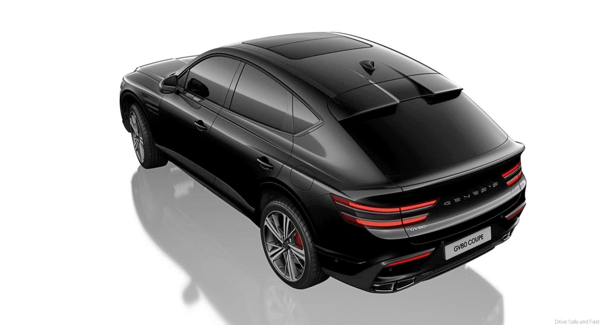 Terdapat juga lampu belakang unik yang mengeluarkan cahaya LED serta lampu berhenti ketiga yang terintegrasi pada pintu bagasi. Terdapat 13 pilihan warna yang boleh anda pilih, termasuk warna eksklusif yang dipanggil Bering Blue. GV80 Coupé juga dilengkapi dengan Active Sound Design untuk bunyi ekzos yang lebih kuat secara simulasi dan Flex Brake untuk rasa pedal brek yang boleh disesuaikan.