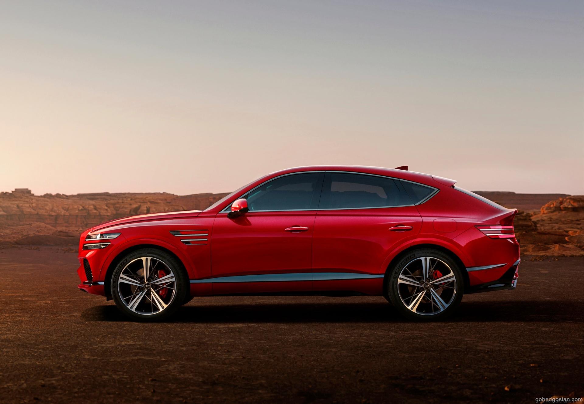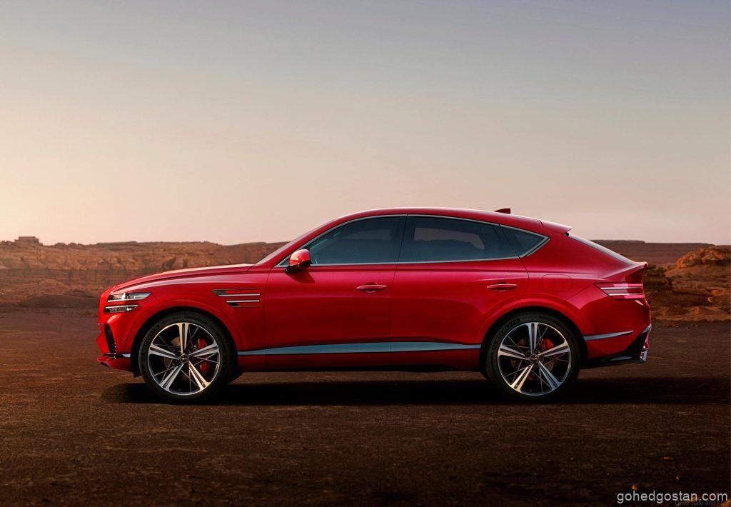 Seperti yang dijangkakan, GV80 Coupé menampilkan persamaan menarik dengan SUV GV80 standard, terutamanya bahagian hadapan kenderaan ini. Bahagian belakang kereta ini pula menampilkan siluet yang dramatik dengan rim 20-22 inci yang menambah keunikan siling meruncingnya.