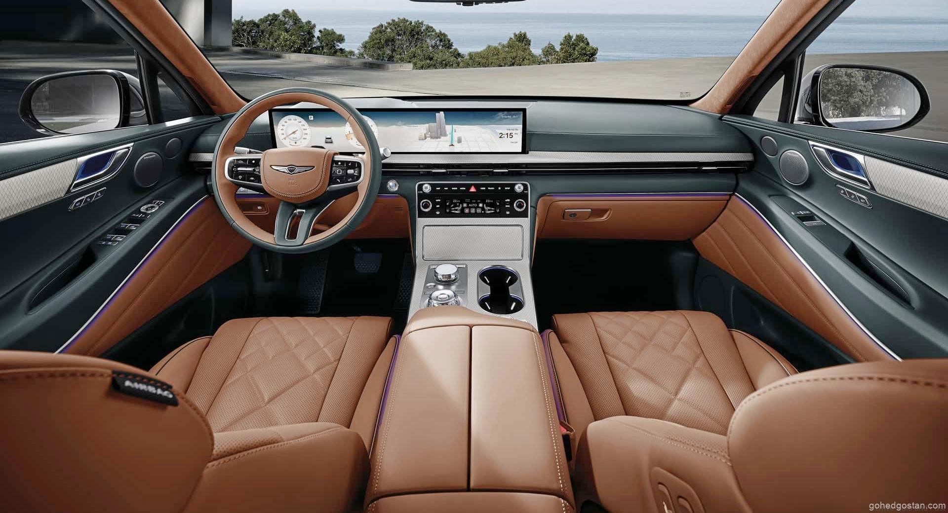 Genesis telah mengurangkan beberapa aspek yang lebih sporty yang ditekankan dalam versi konsep. Versi pengeluaran tidak lagi mempunyai sokongan logam dan tempat duduk individu di belakang. Sebaliknya, anda akan mendapat kerusi 3 orang yang lebih konvensional yang dilitupi kulit. Terdapat stereng potongan D dua tan, corak hiasan karbon dan jahitan unik pada tempat duduk. Terdapat juga aksen logam pada pedal, tempat duduk belakang yang boleh disandarkan, dan rak bagasi yang boleh dilipat di dalam bonet.